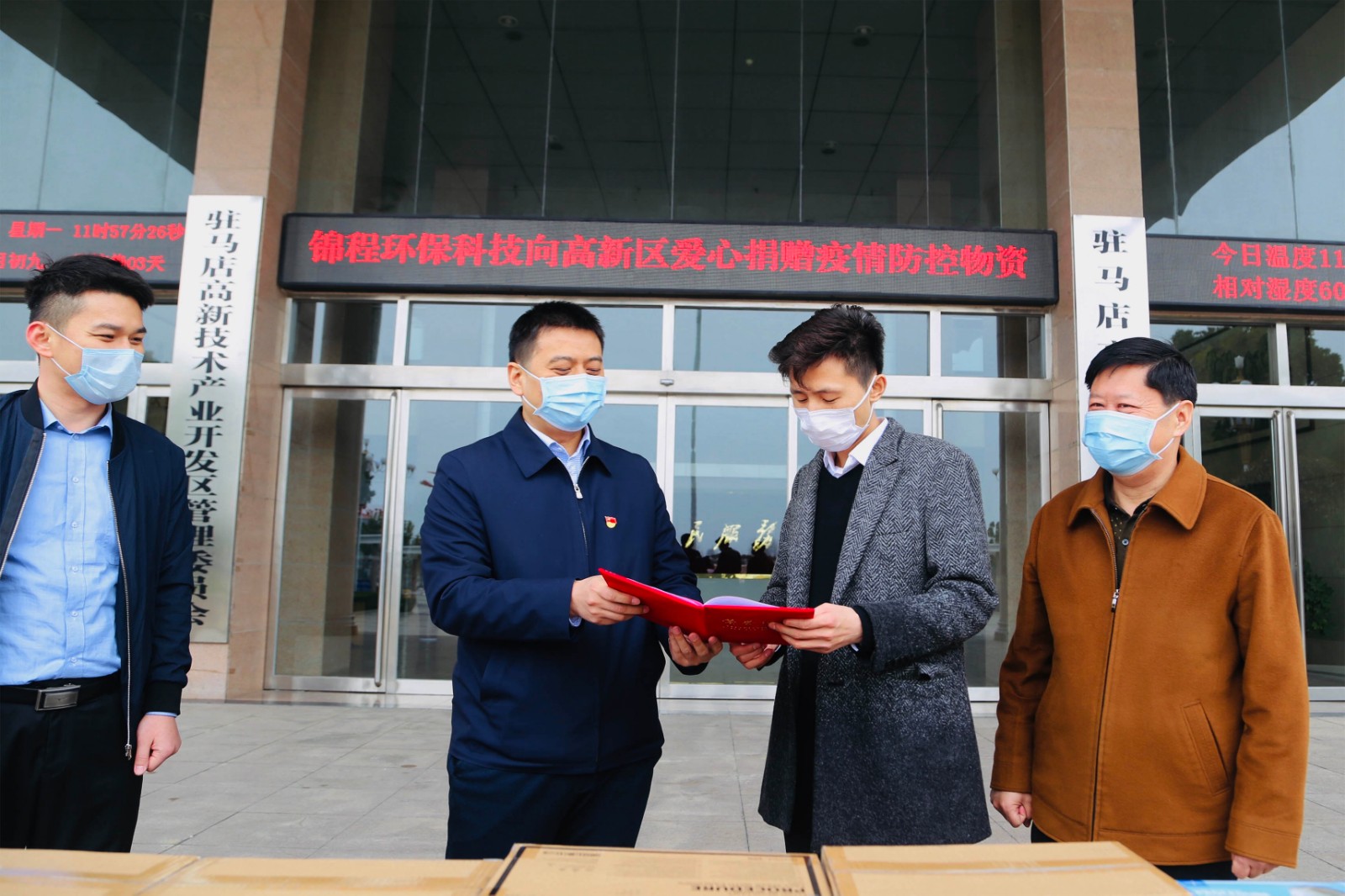 " 在疫情防控的關鍵時期,貴公司慷慨捐贈20000個一次性口罩、200部額溫槍,用愛心、責任、擔當,匯聚起眾志成城、共克時艱的精神力量,